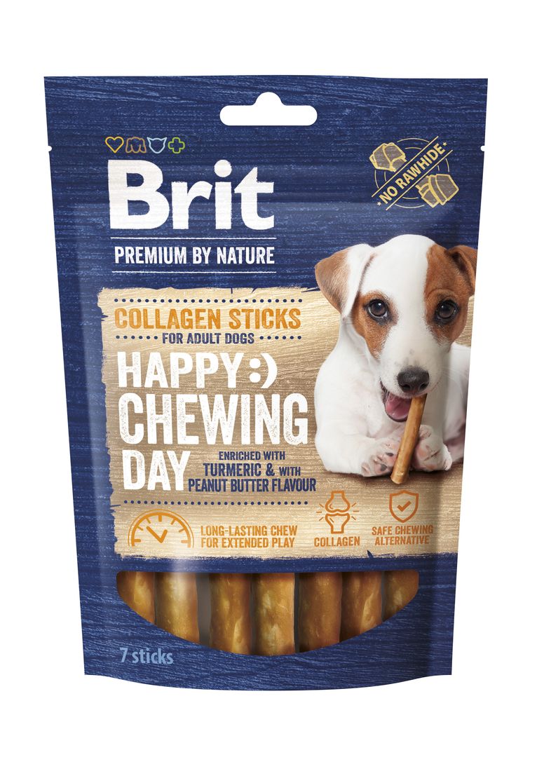 BRIT Premium by Nature Collagen Sticks kurkumával dúsítva és földimogyoróvaj ízesítéssel.