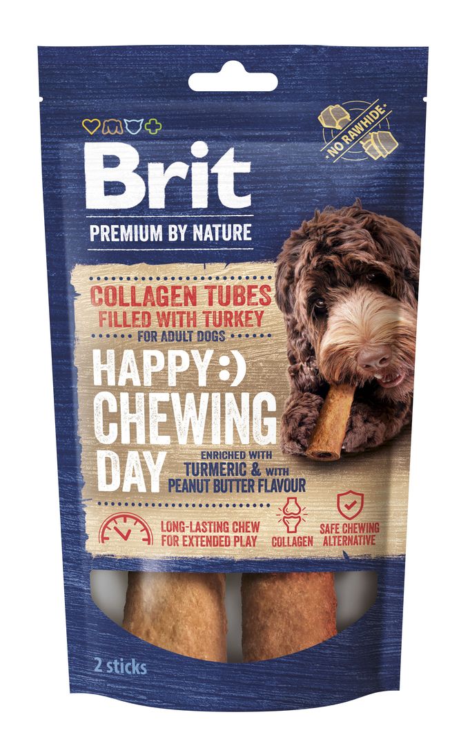 Kiegészítő kutyatáp. Összetevők: marhakollagén (53%), glicerin, szárított pulykahús